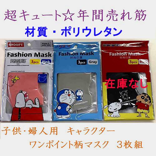 キャラクターマスク 3枚入り スヌーピー ドラえもん ワンポイント スポンジタイプ ファッション こども 婦人用 個包装 洗えるマスク ワンポイント3枚入 みらい屋 通販 Yahoo ショッピング